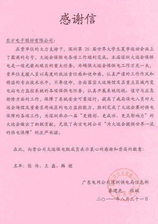 8月23日,世界大学生运动会在深圳圆满落幕,隐马(上海)健康科技有限公司作为大运会唯一保电企业见证了世界大学生体育运动的蓬勃发展。隐马(上海)健康科技有限公司技术中心系统部与工程部坚守“忠于职守,全力以赴,誓保大运电网安全”的信念,联手实现了大运保供电期间系统零故障、零缺陷的目标。